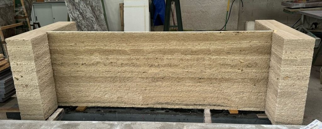 E35 Roman Travertine Rockcrust Supersize offers large format panels with a deep rocky texture in just 40mm thickness.